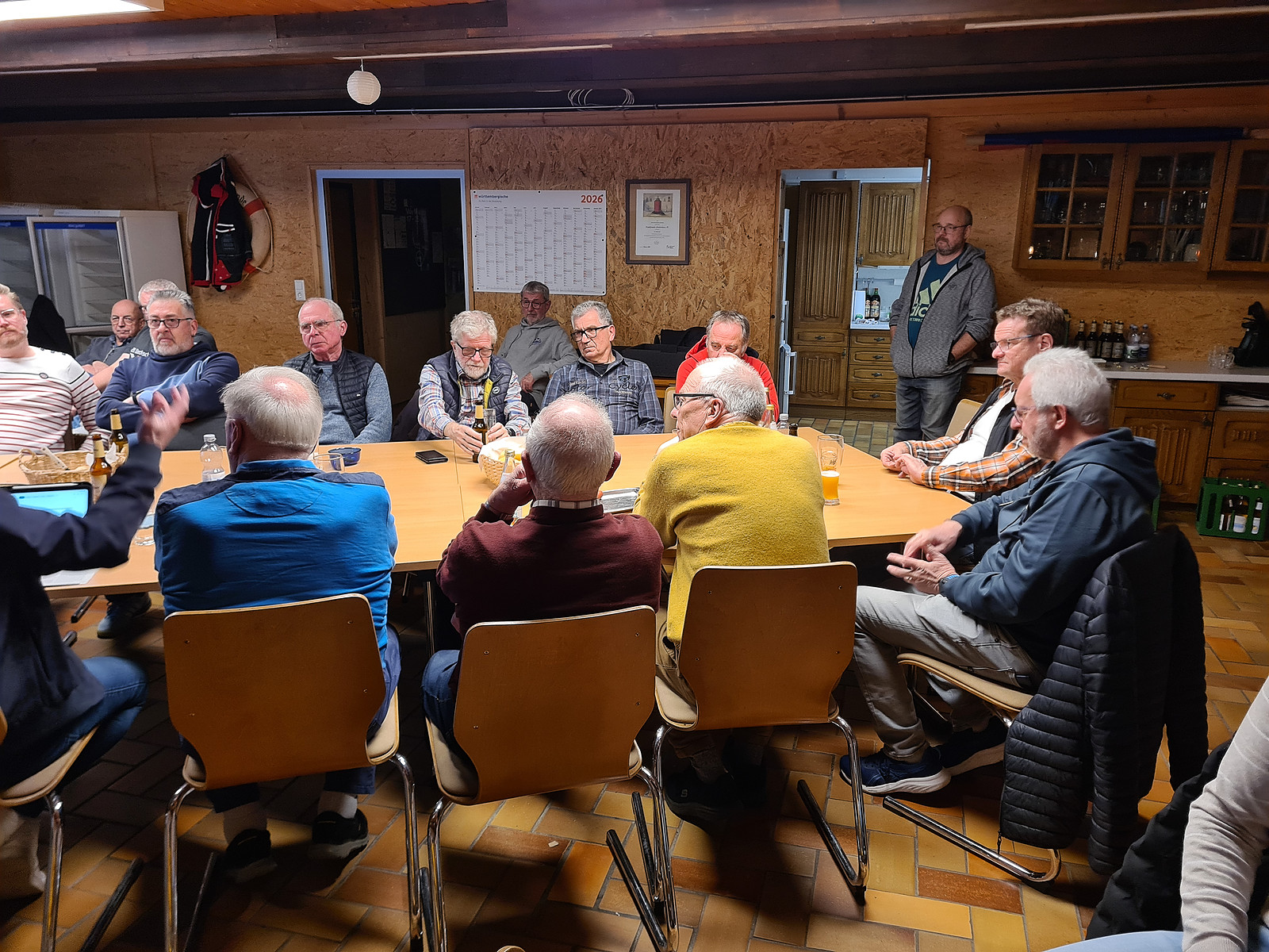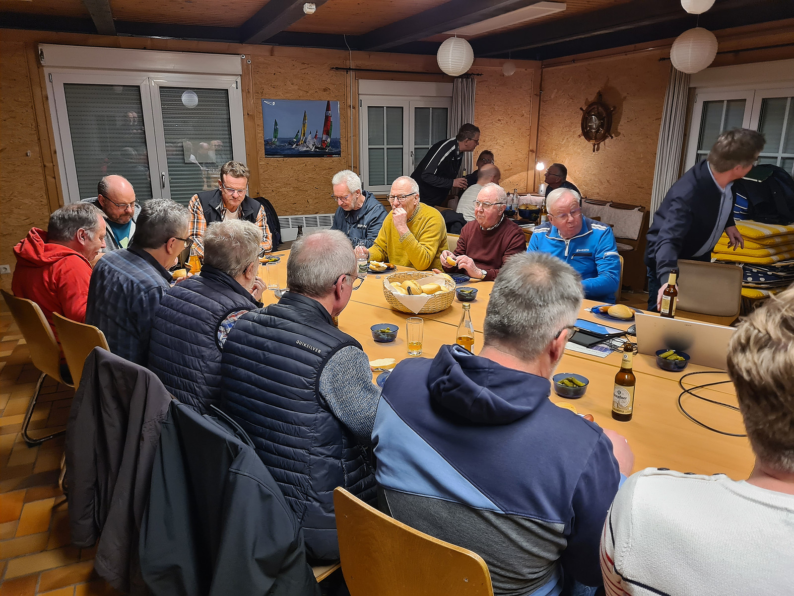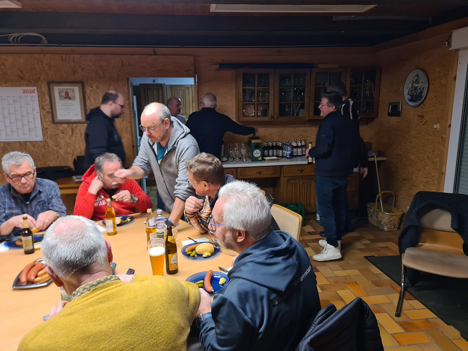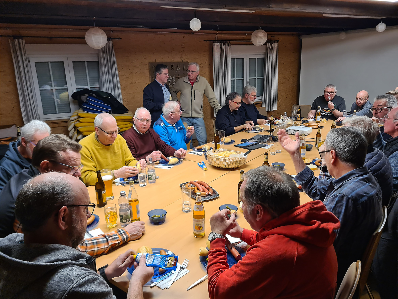 Nach einer kurzen Begrüßung und einem Gebet durch Gerd haben 25 Männer das Vesper vertilgt.