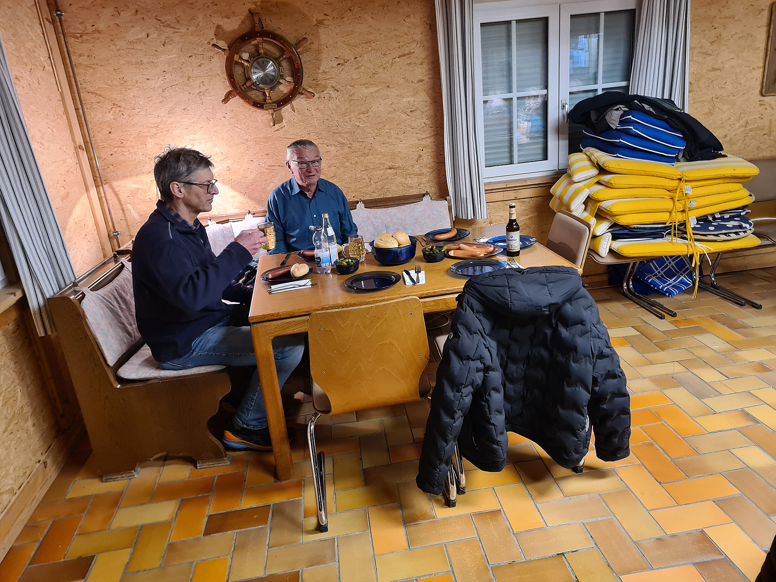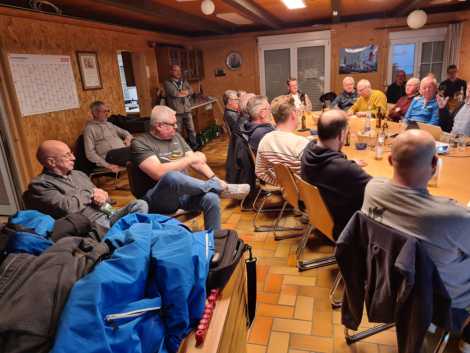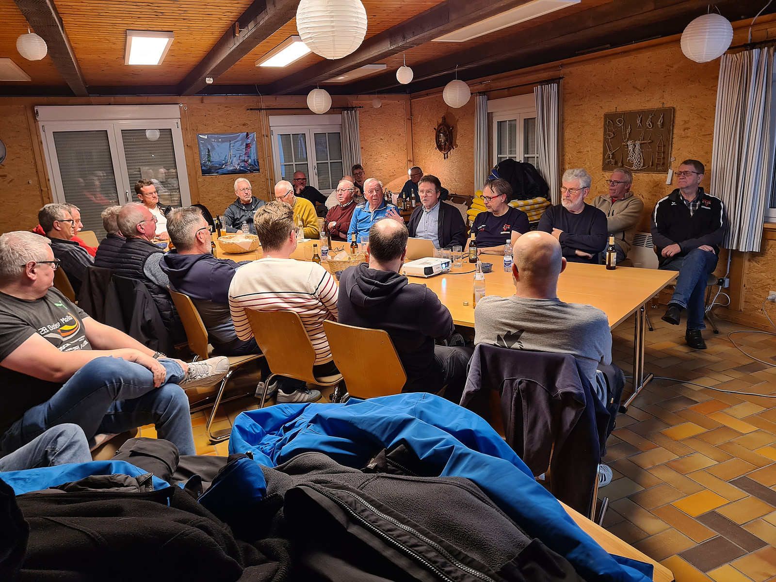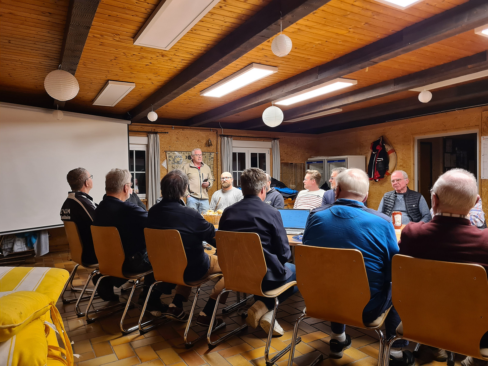 Nach einer kurzen Begrüßung und einem Gebet durch Gerd haben 25 Männer das Vesper vertilgt.